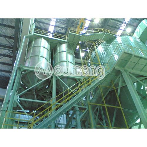 除塵系統(tǒng)由高效旋風(fēng)分離器、布袋除塵器、離心風(fēng)機等組成。抽風(fēng)機將較細(xì)的顆粒料與干燥空氣一起送入高效旋風(fēng)分離器。經(jīng)過有效分離,較細(xì)顆粒料進入分離器底部的收集筒回收,所剩的含有極少量微細(xì)顆粒料的廢氣由離心風(fēng)機吸入布袋除塵器經(jīng)過再次除塵收集,實現(xiàn)了廢氣的無害化處理,最后的廢氣從煙囪排出。