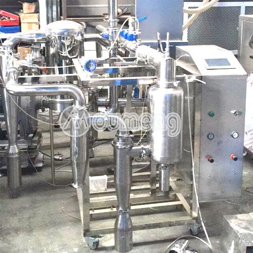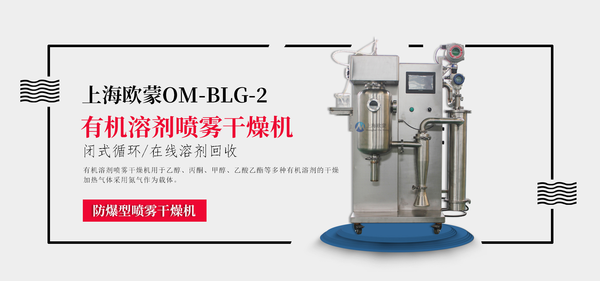 N2氮氣循環(huán)式噴霧干燥機系統(tǒng)采用密閉設(shè)計,主要應(yīng)用于酒精類溶液,N2作為惰性氣體干燥使得設(shè)備運行更加安全。產(chǎn)品無氧化,品質(zhì)好,粉料松裝比重及平均粒徑一致性好,其流動性可滿足自動壓機連續(xù)化生產(chǎn),同時溶劑介質(zhì)可以在線回收。在規(guī)定的條件下溶劑蒸發(fā)能力2Kg/h(根據(jù)物料固體含量)。整套設(shè)備由供料系統(tǒng)、霧化器、電加熱器、干燥塔、旋風(fēng)收塵器、冷凝塔、防爆裝置、在線氧氣檢測系統(tǒng)及電氣控制系統(tǒng)組成等。