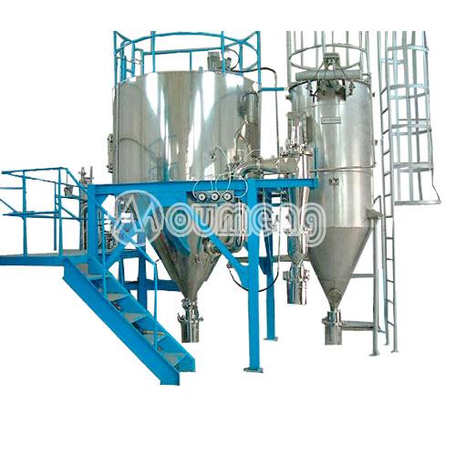 閉式循環(huán)噴霧干燥機(jī)系統(tǒng)由噴霧干燥機(jī)主機(jī)、帶空氣過(guò)濾器的加熱器、鼓風(fēng)機(jī)、水氣分離器、大小冷卻塔、噴淋塔、排風(fēng)機(jī)、一級(jí)旋風(fēng)分離器、二級(jí)旋風(fēng)分離器、泵、測(cè)氧儀以及管路與控制閥等組成。